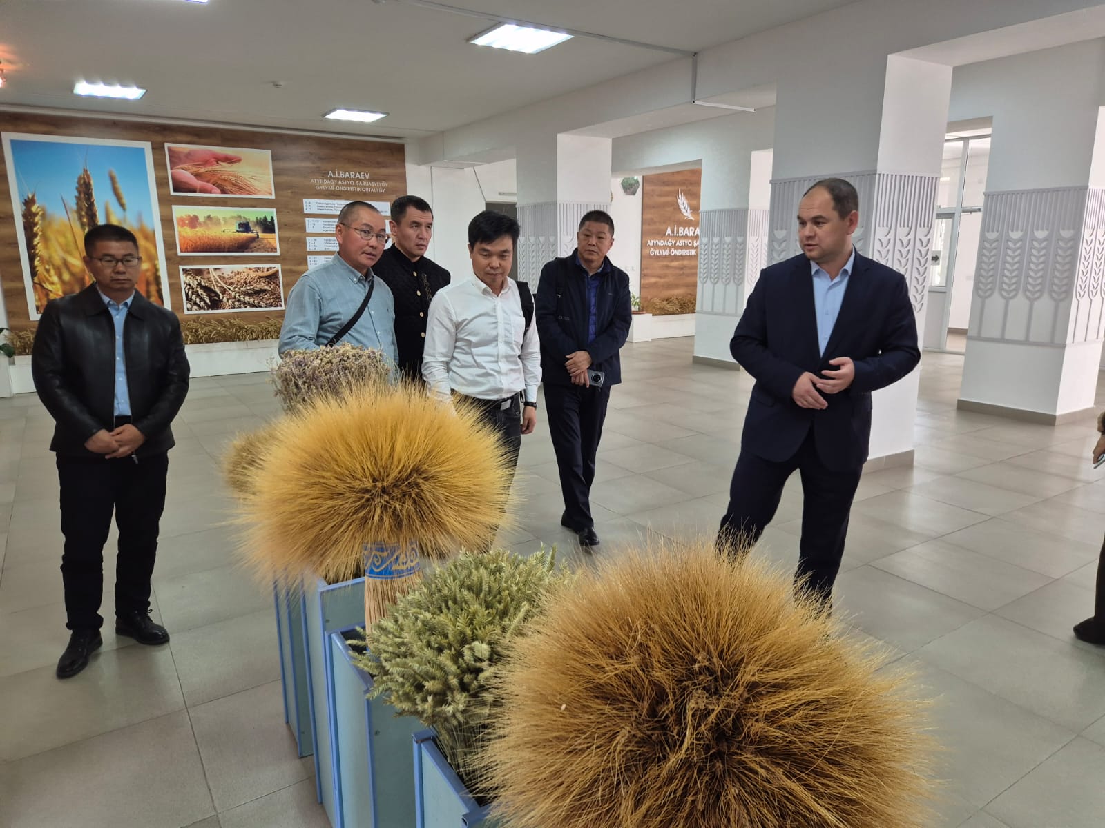 Во время встречи Председатель Правления ТОО «НПЦ ЗХ им. А. И. Бараева» Тимур Савин ознакомил делегацию с основными направлениями деятельности Центра, включая селекцию сельскохозяйственных культур, разработку технологий возделывания и защиты зерновых, зернобобовых, масличных и кормовых культур.
