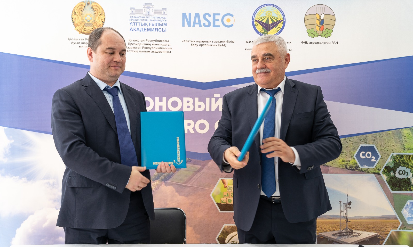 В ходе знакового мероприятия было подписано Соглашение между НПЦЗХ им.А.И.Бараева в лице Председателя Правления Савиным Т.В. и ФНЦ Агроэкологии РАН в лице директора Беляева А.И. о проведении совместных научных исследований по карбоновому земледелию. Сторонами было отмечено , что полигон станет ключевой точкой для развития системы сертификации углеродных единиц и углеродного квотирования в Казахстане, а также площадкой для практического взаимодействия с международными партнёрами по вопросам формирования совместных механизмов углеродного рынка и совместной реализации климатических проектов.